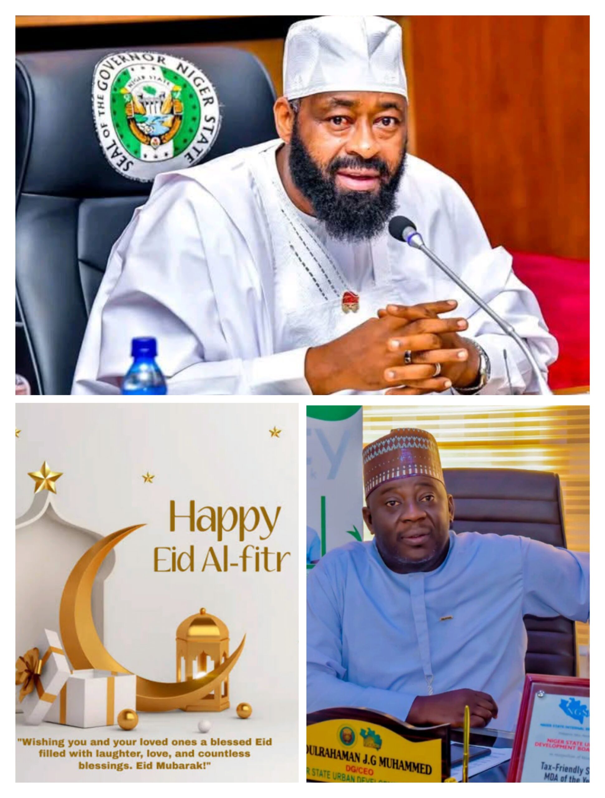 The Director General of Niger State Urban Development Board, Hon. Abdulrahman J.G Muhammad,  on behalf of the Management and Staff of the Board, warmly felicitates  the Niger State Farmer Governor, Mohammed Umar Bago and the entire Muslim Faithful across State on the joyous Celebrations of Eid-el-Fitr, marking the successful completion of the Holy Month of Ramadan.